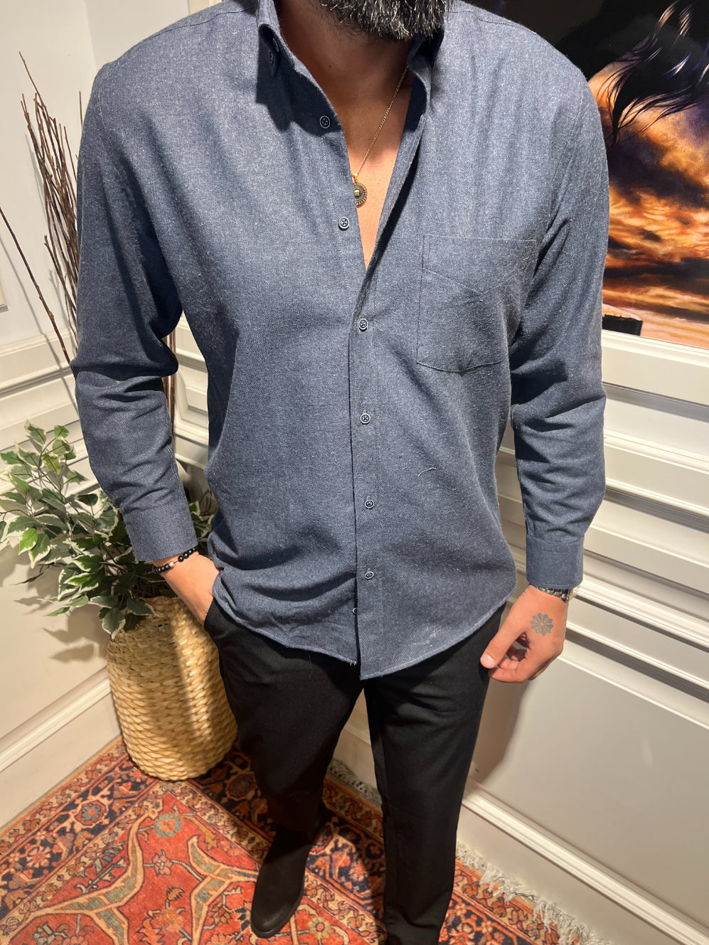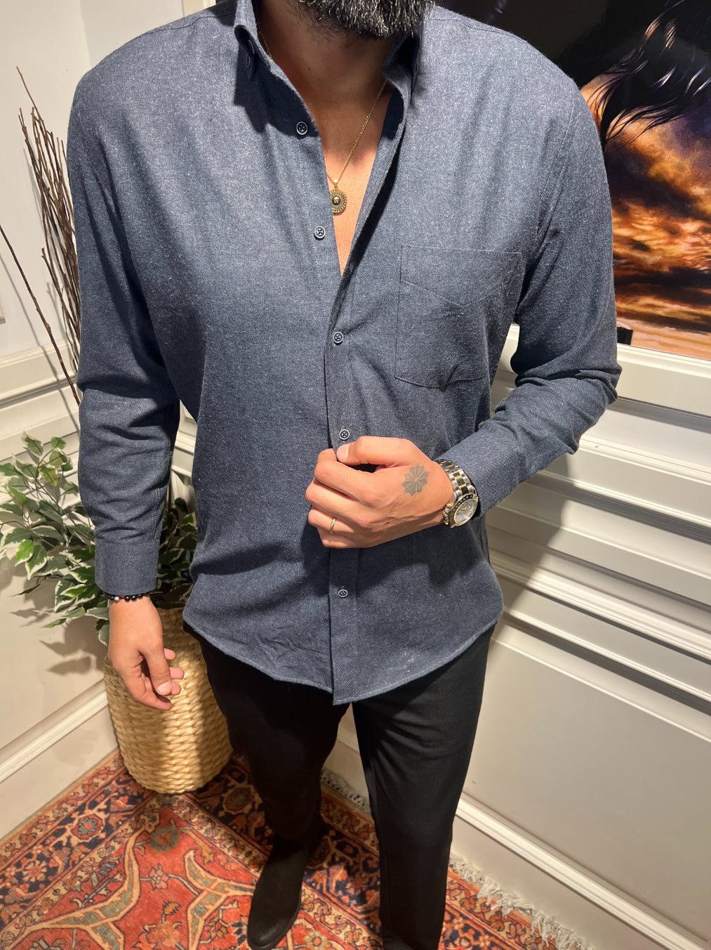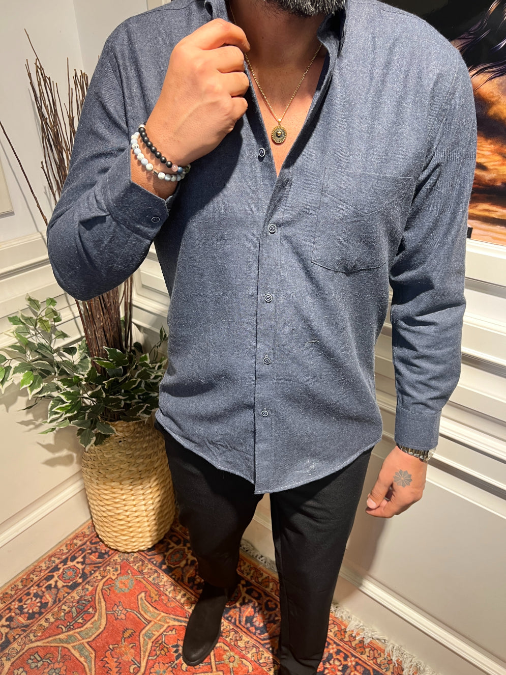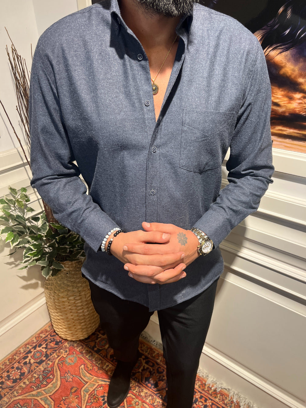 Guild-Hemd aus 100 % Wolle, moderne Passform, schlichtes Indigo-Kaschmir-Hemd 7043