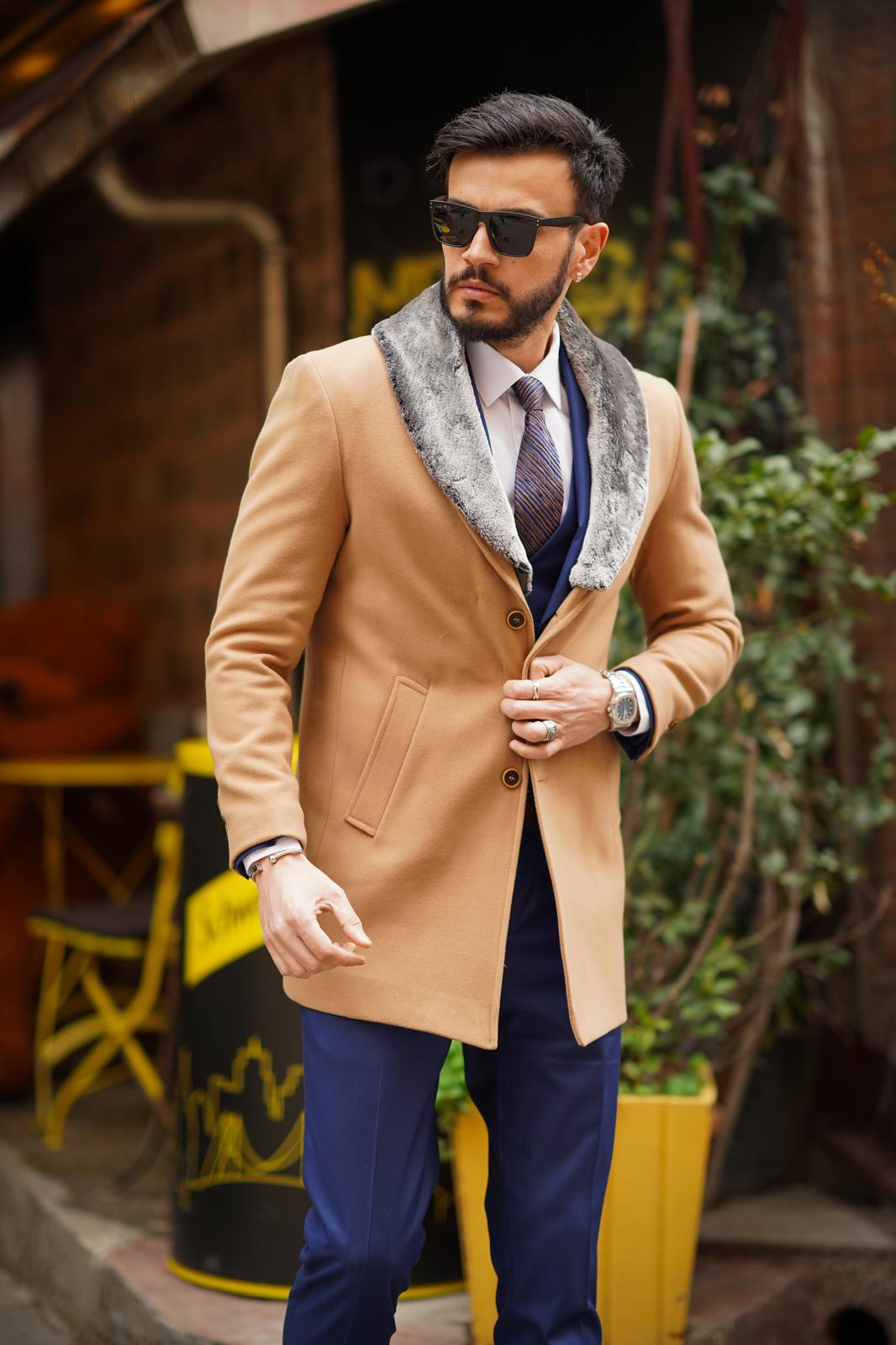 Beiger Mantel mit Pelzkragen von Guild Hagen
