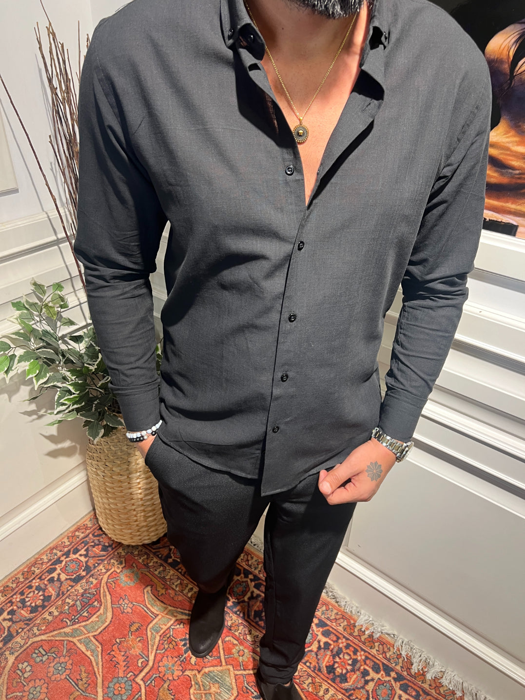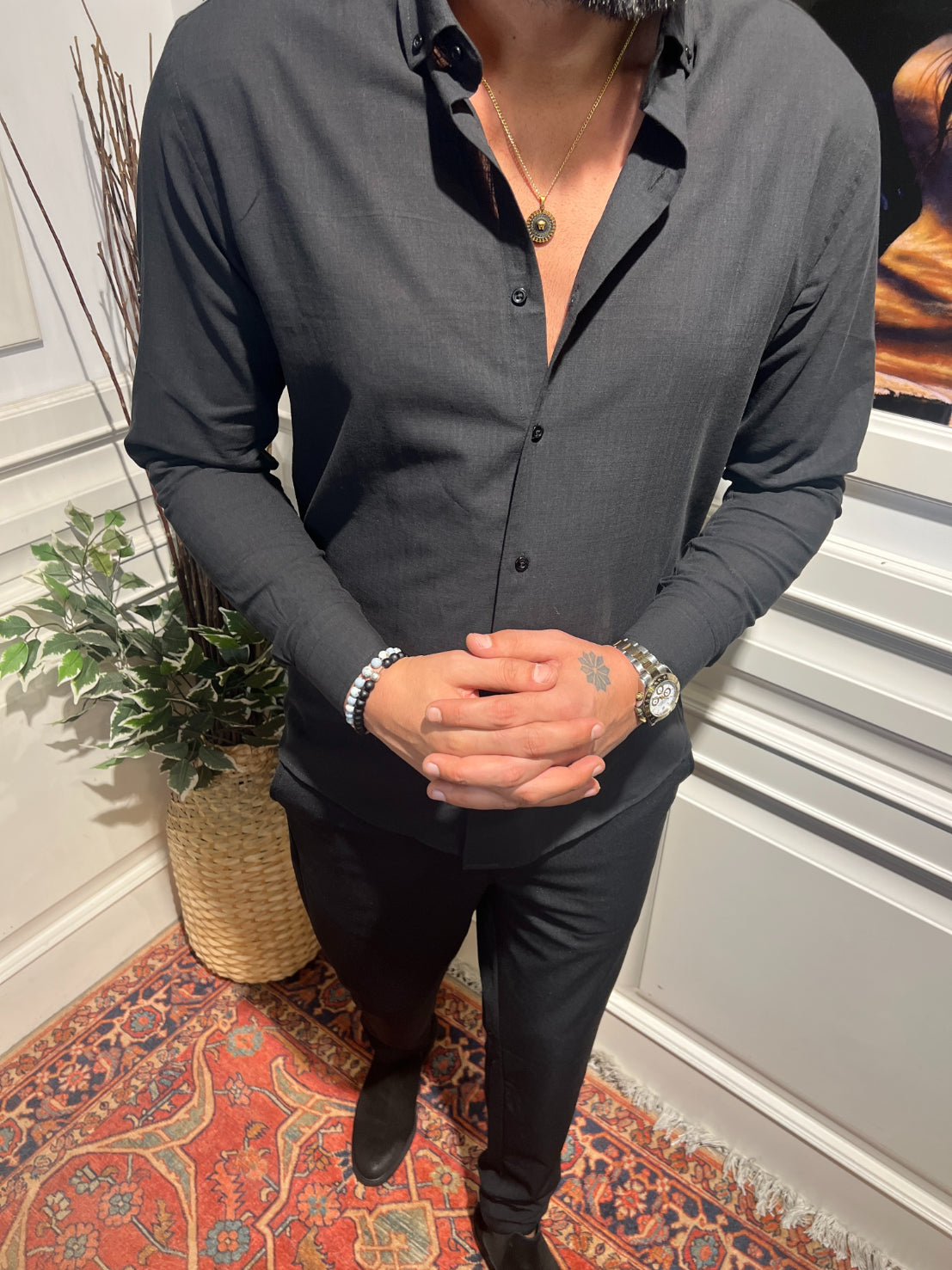 Guild 100 % Leinen Slim Fit schwarzes Leinenhemd 7038