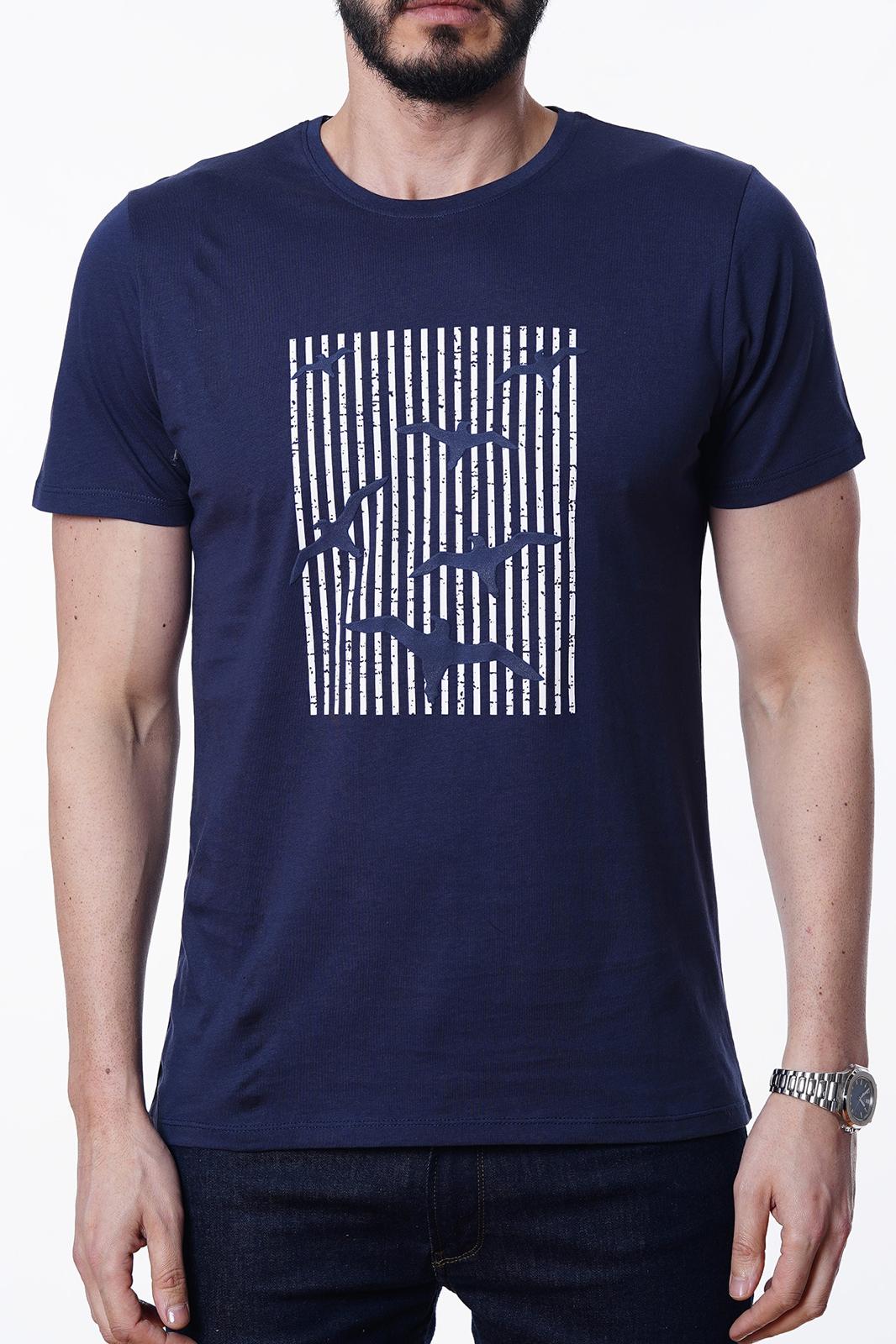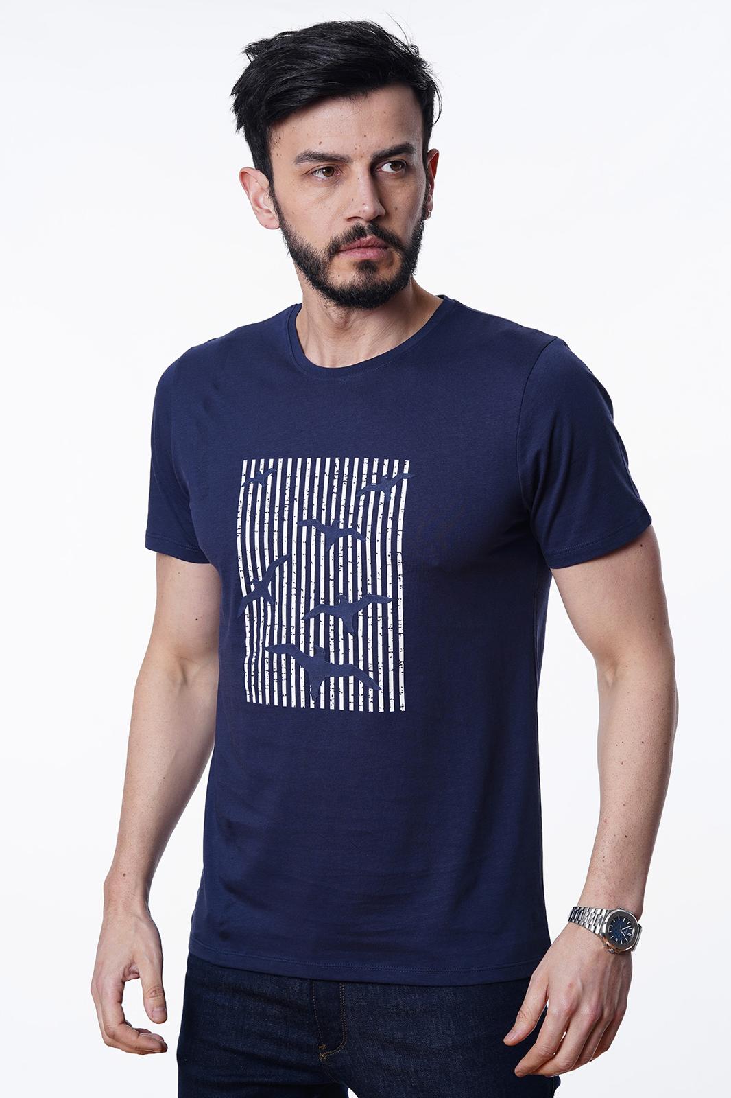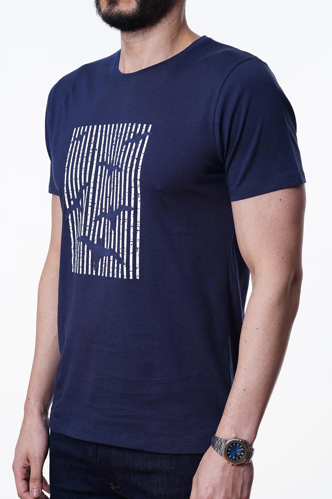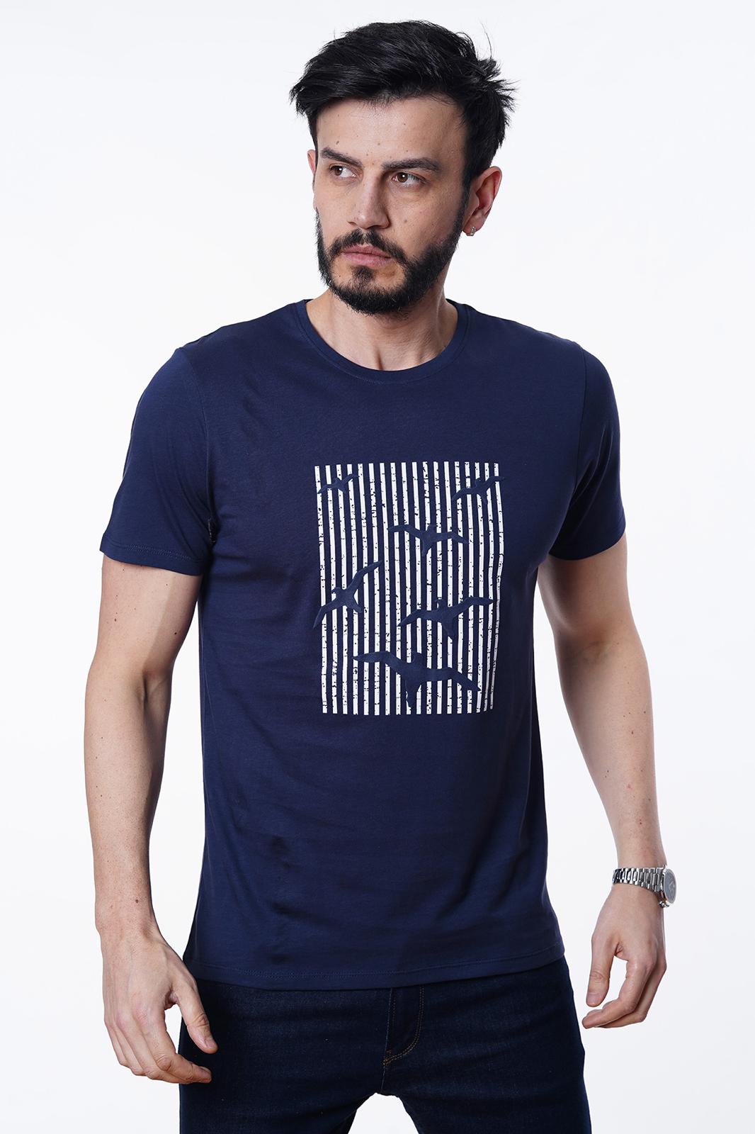 Bedrucktes, marineblaues T-Shirt aus 100 % Baumwolle mit Rundhalsausschnitt und schmaler Passform