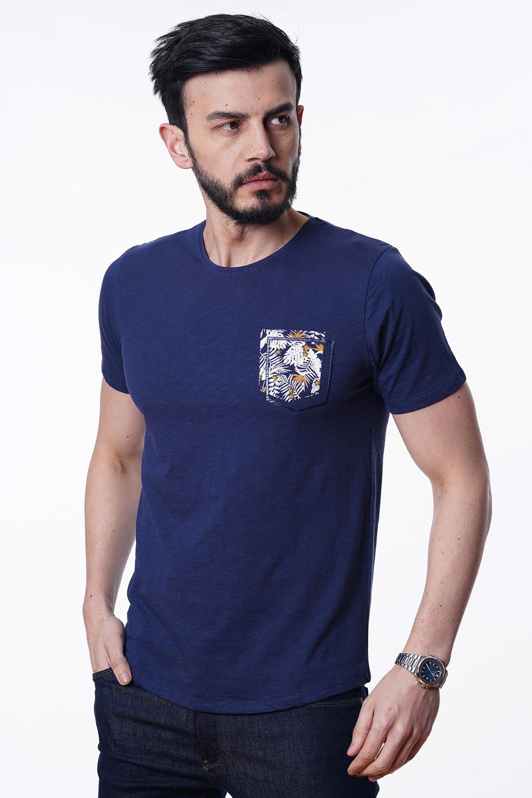 Guild Abaco Marineblaues T-Shirt mit Taschenmuster
