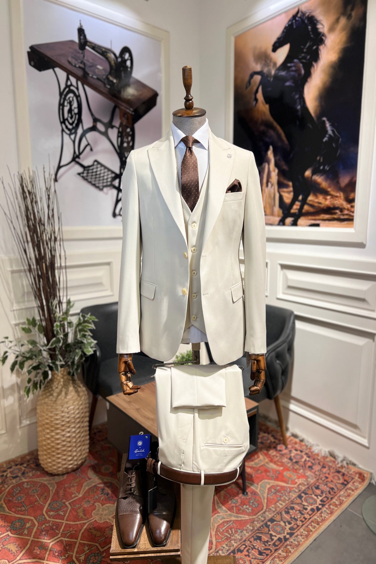 Guild Balkan Slim Fit 3-teilige mit Weste Anzug Creme