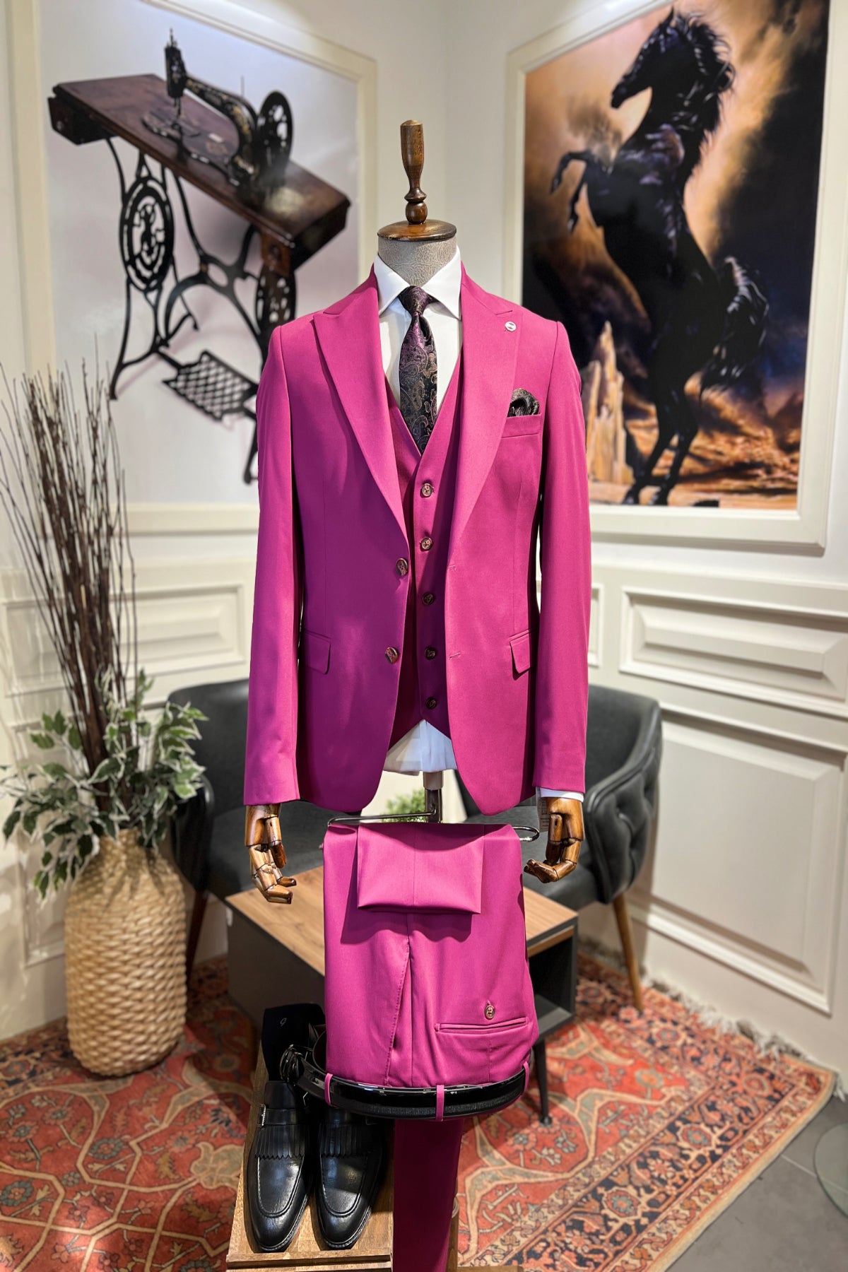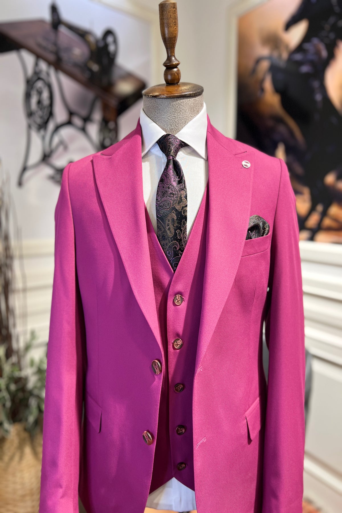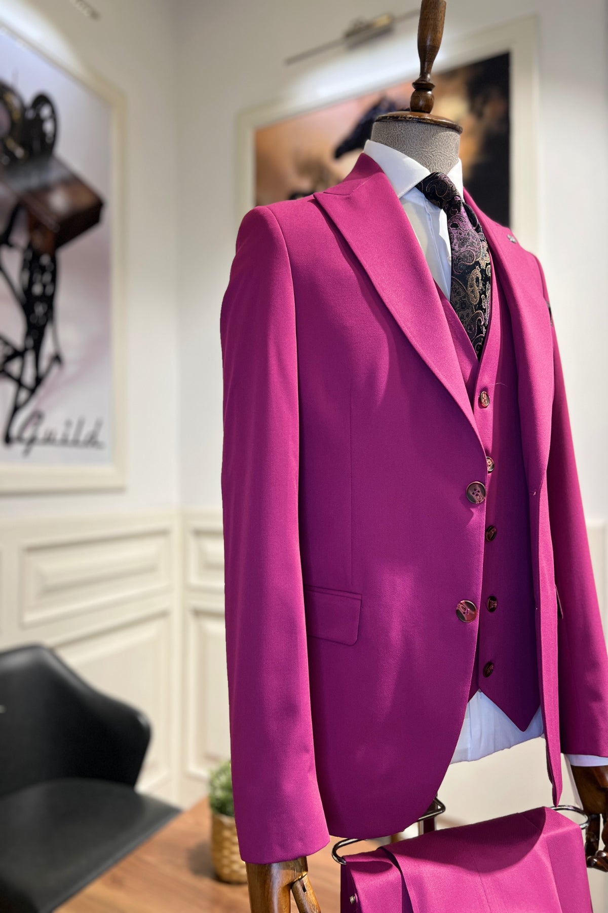 Guild Balkan Slim Fit 3-teilige mit Weste Anzug Pflaume