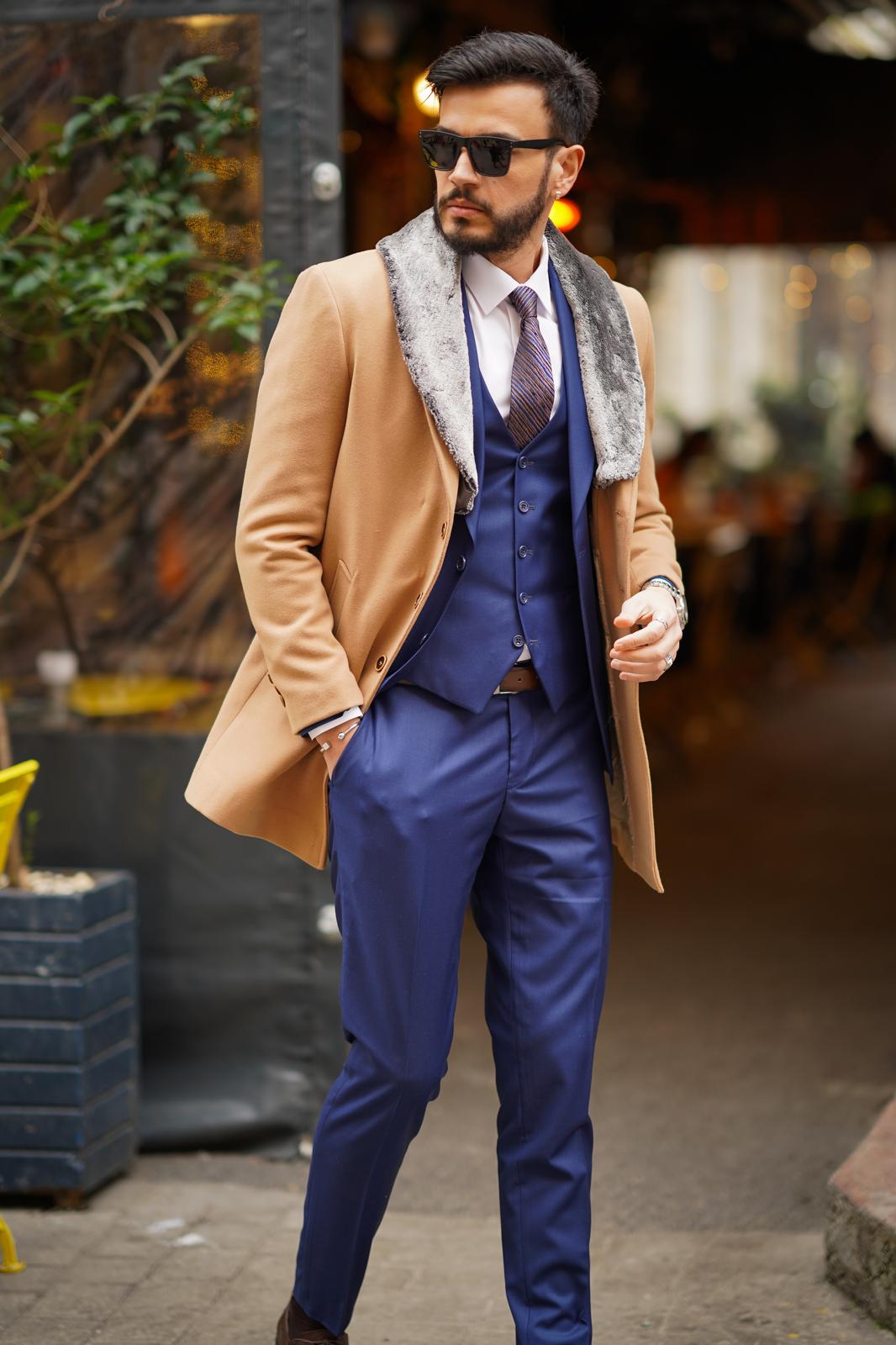 Beiger Mantel mit Pelzkragen von Guild Hagen