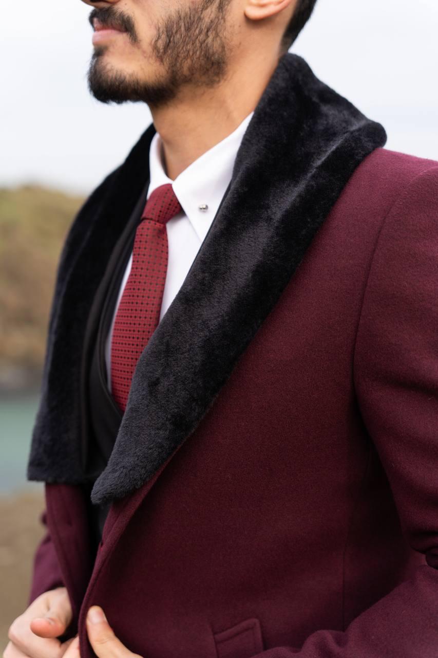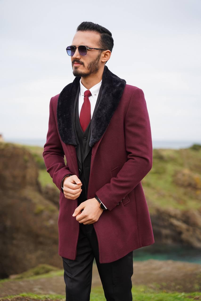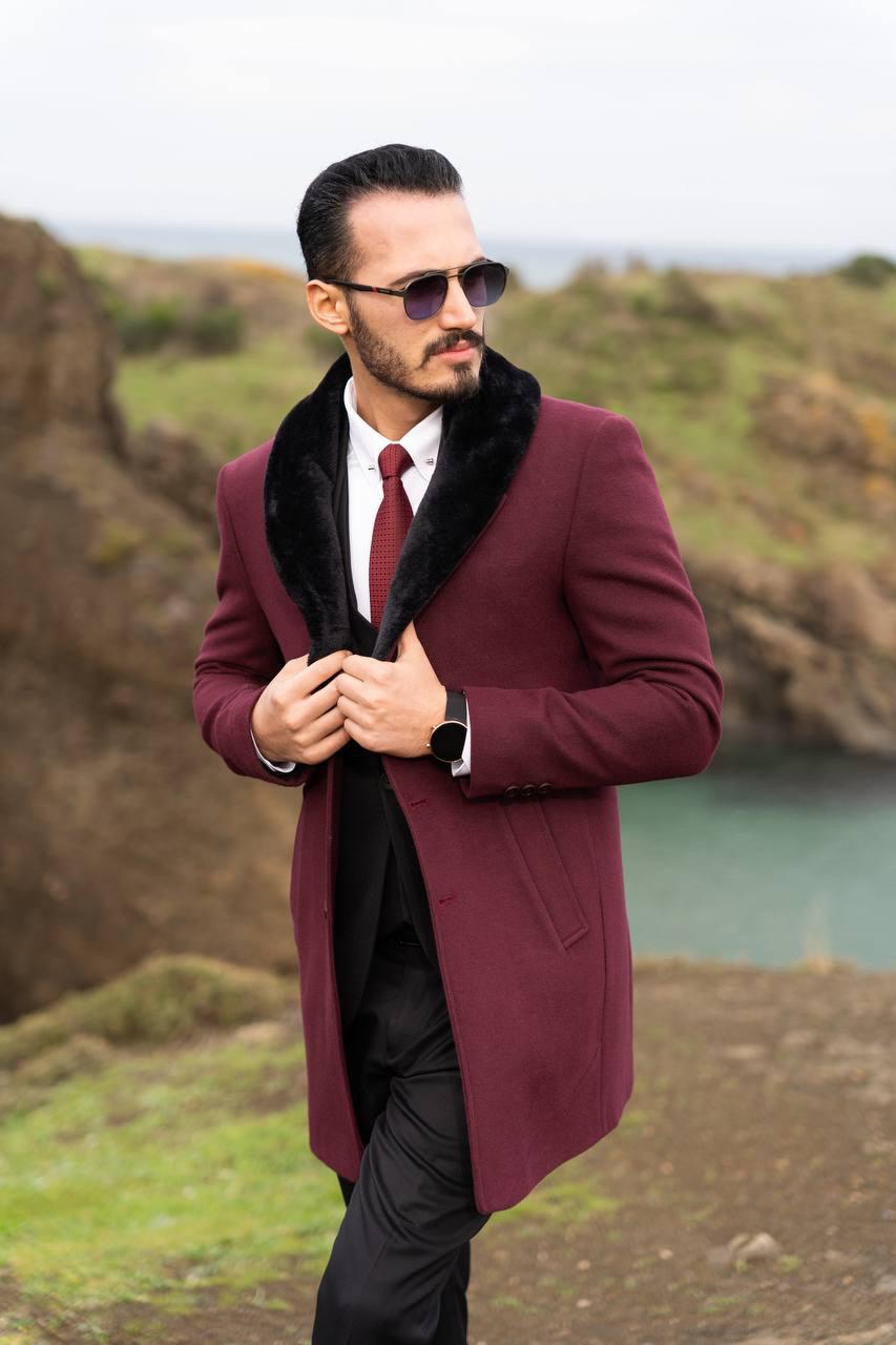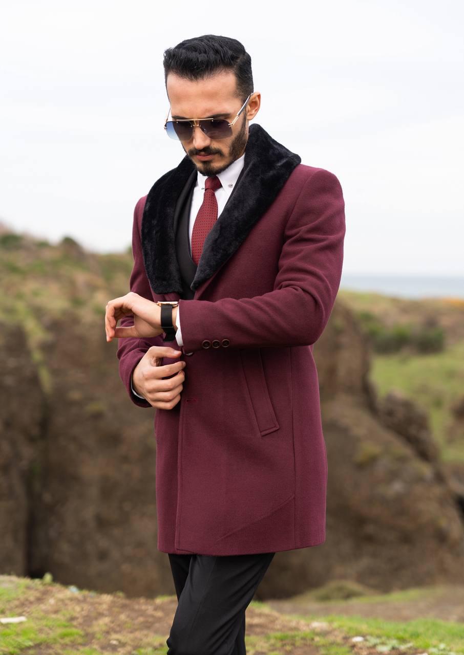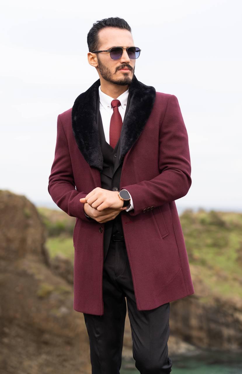 Burgunderroter Mantel mit Pelzkragen von Guild Hagen
