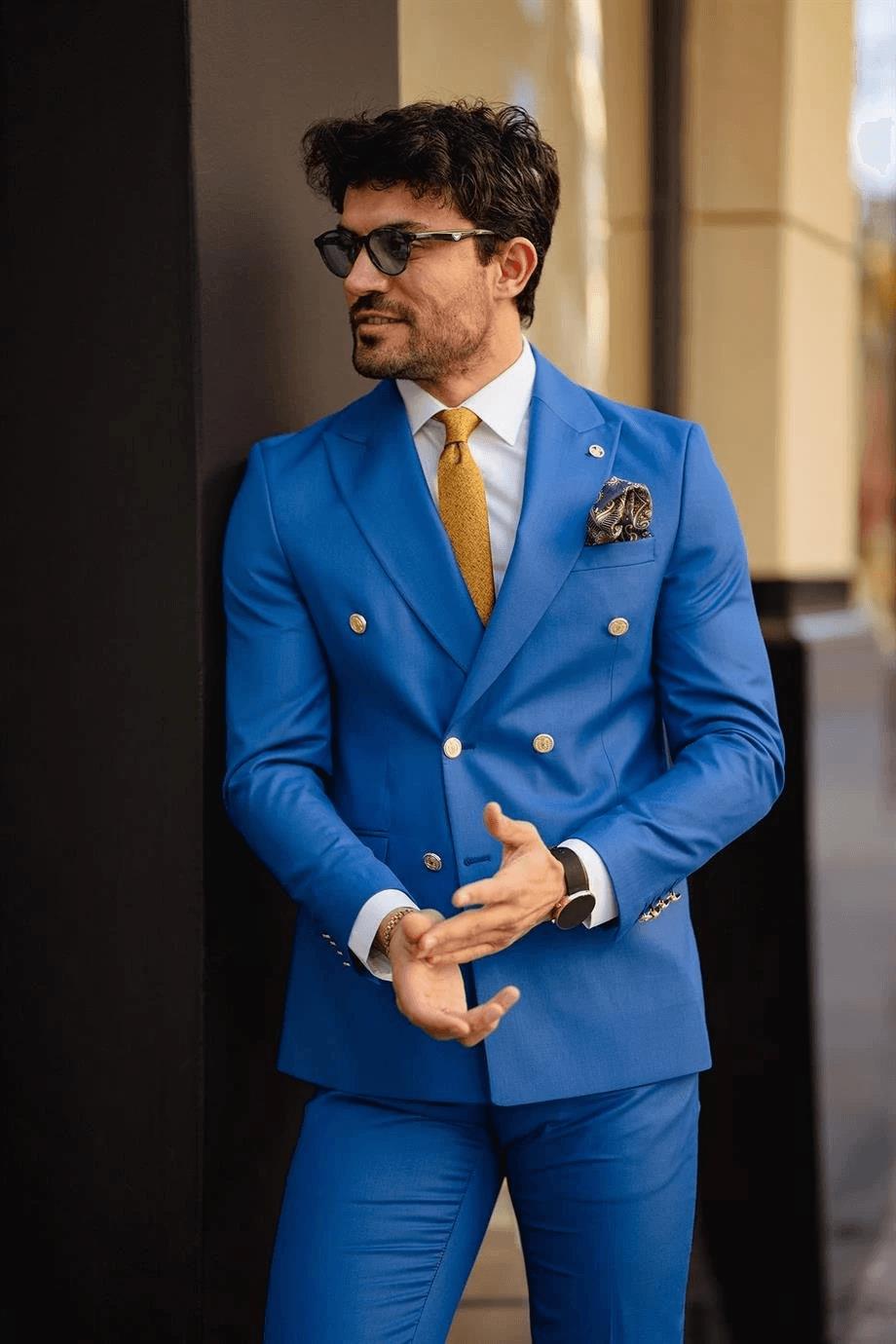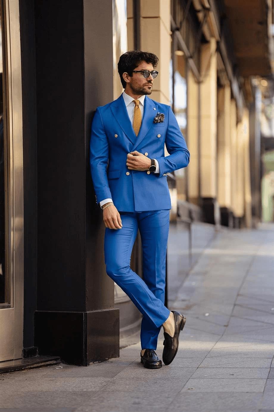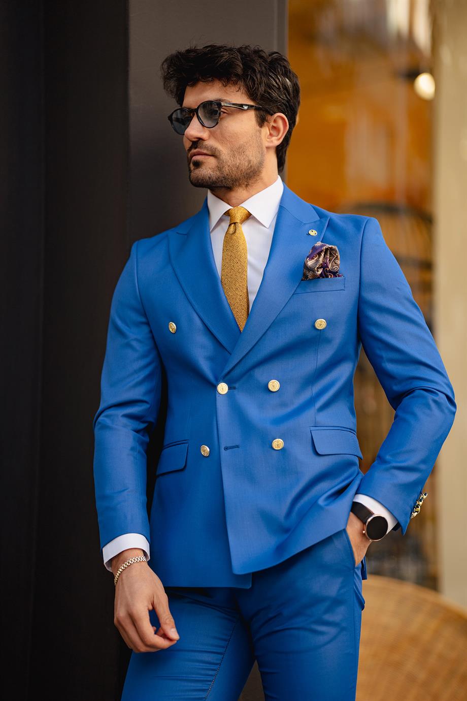 Guild Jesus Slim Fit Zweireihiger Anzug Blauer