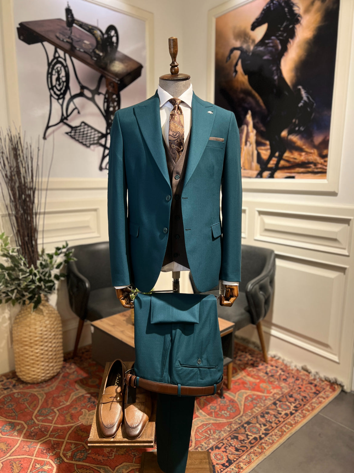 Guild Lagos Slim Fit 3-teilig mit Weste Anzug Grüner