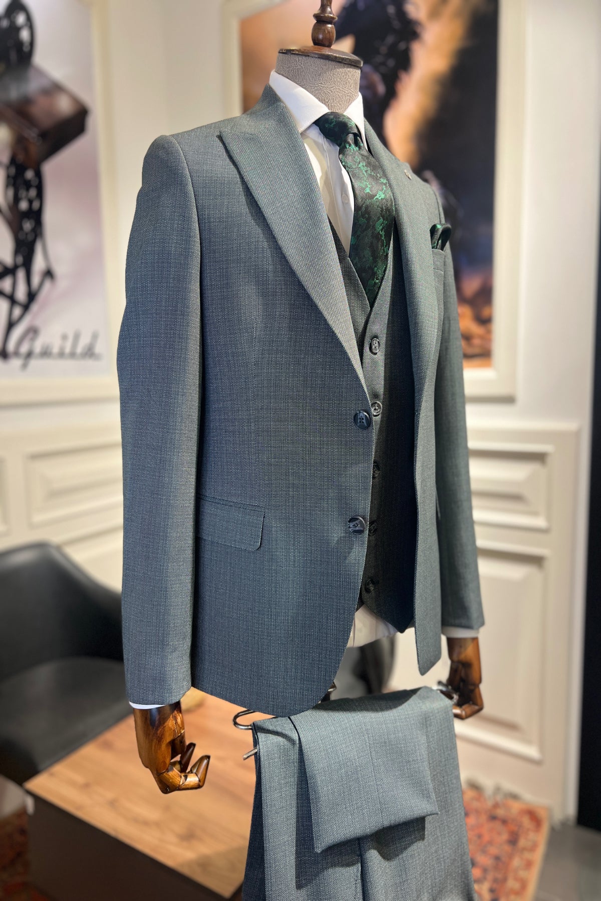 Guild Milos Slim Fit 3-teilig mit Weste Anzug Grüner