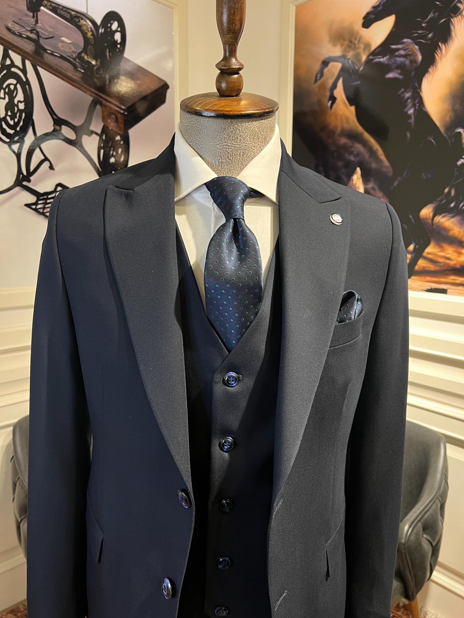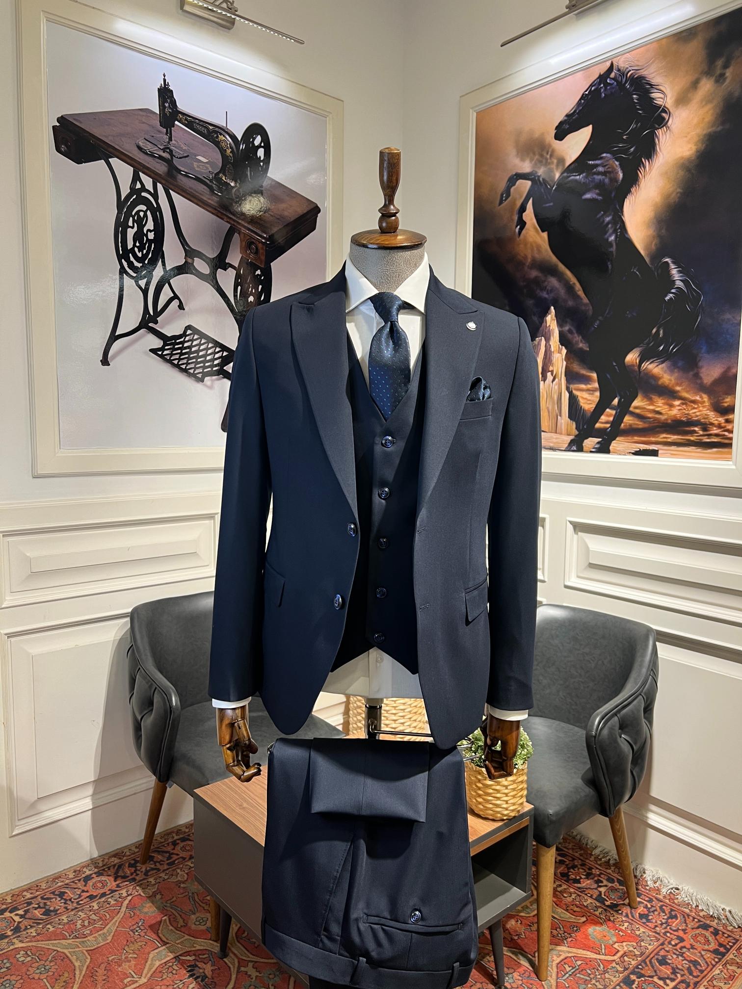 Guild Plav B-strech Slim Fit 3-teilig mit Weste Anzug Marineblauer