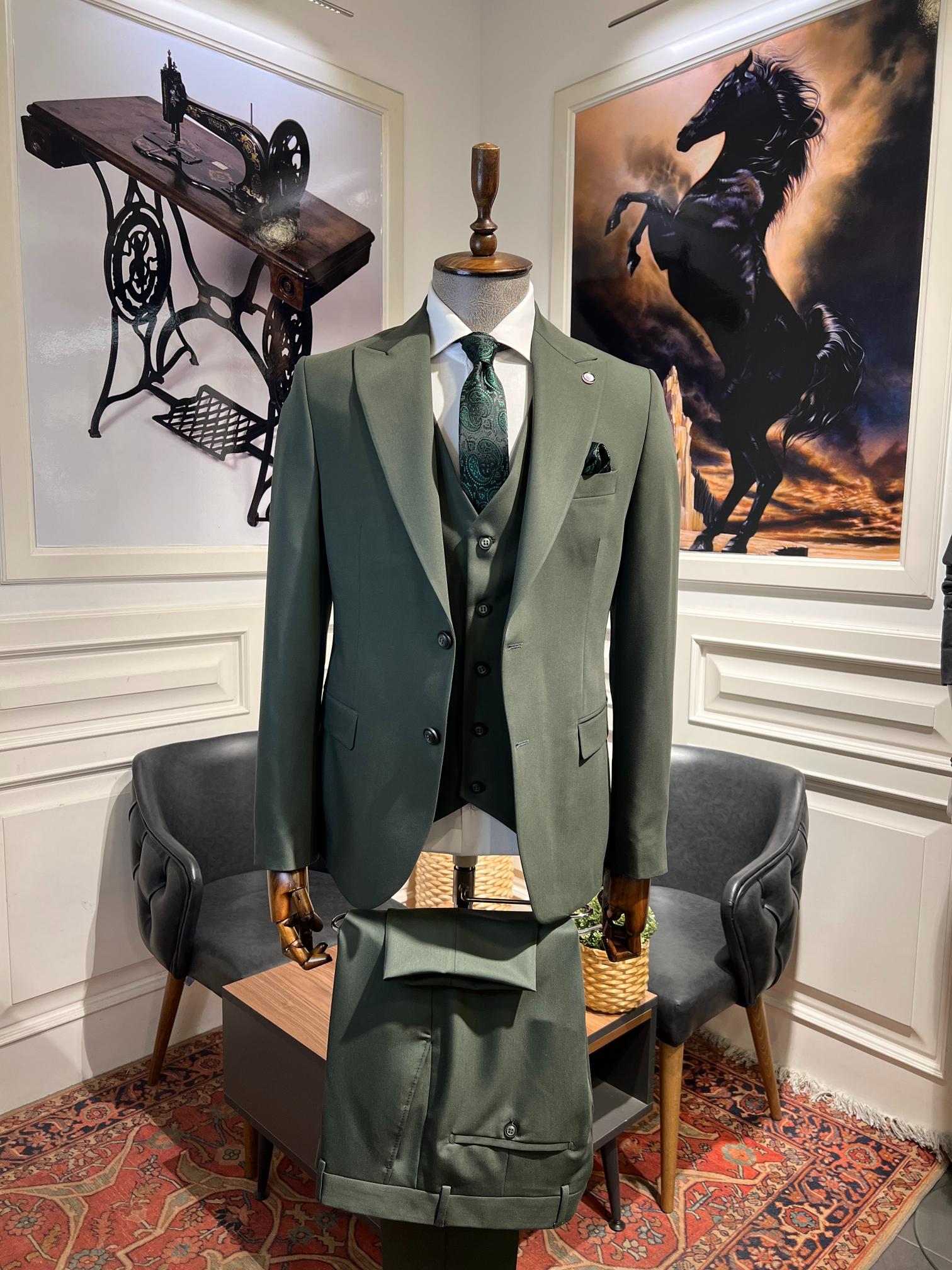Guild Plav B-strech Slim Fit 3-teilig mit Weste Anzug Grüner