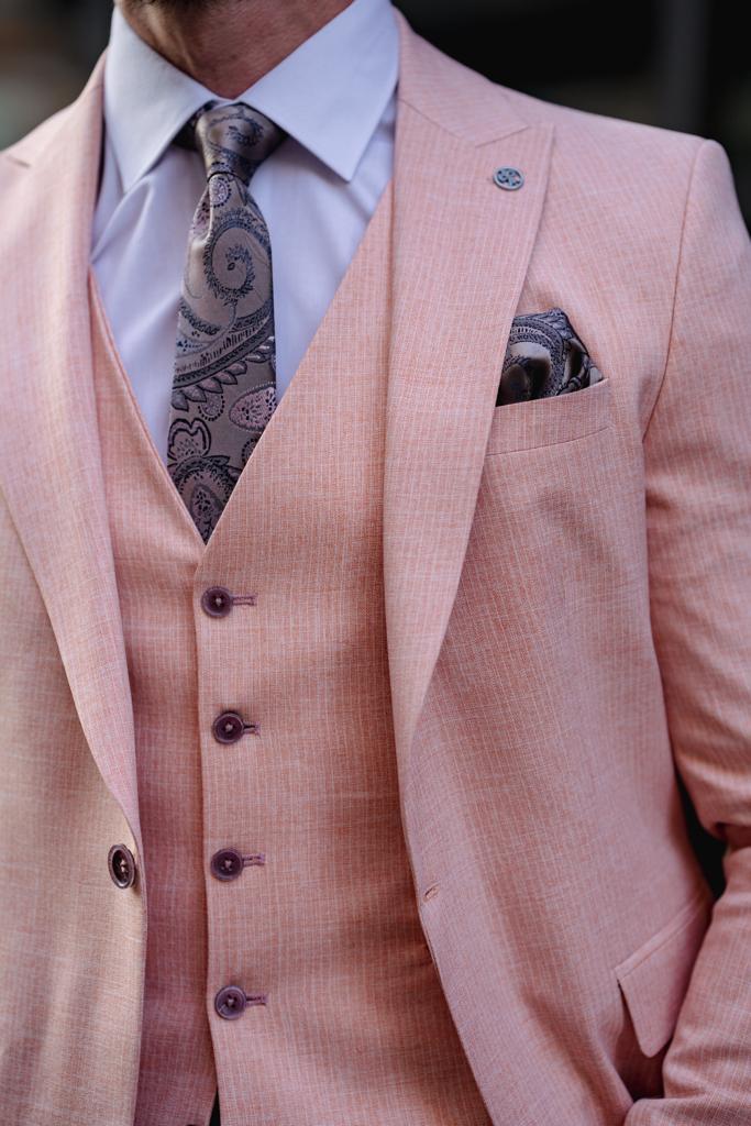 Slim-Fit, Futter aus Twill. Schwalbenhals, einzelner Knopf. Tropfen 6. 35 % Polyester, 62 % Viskose, 3 % Lycra.