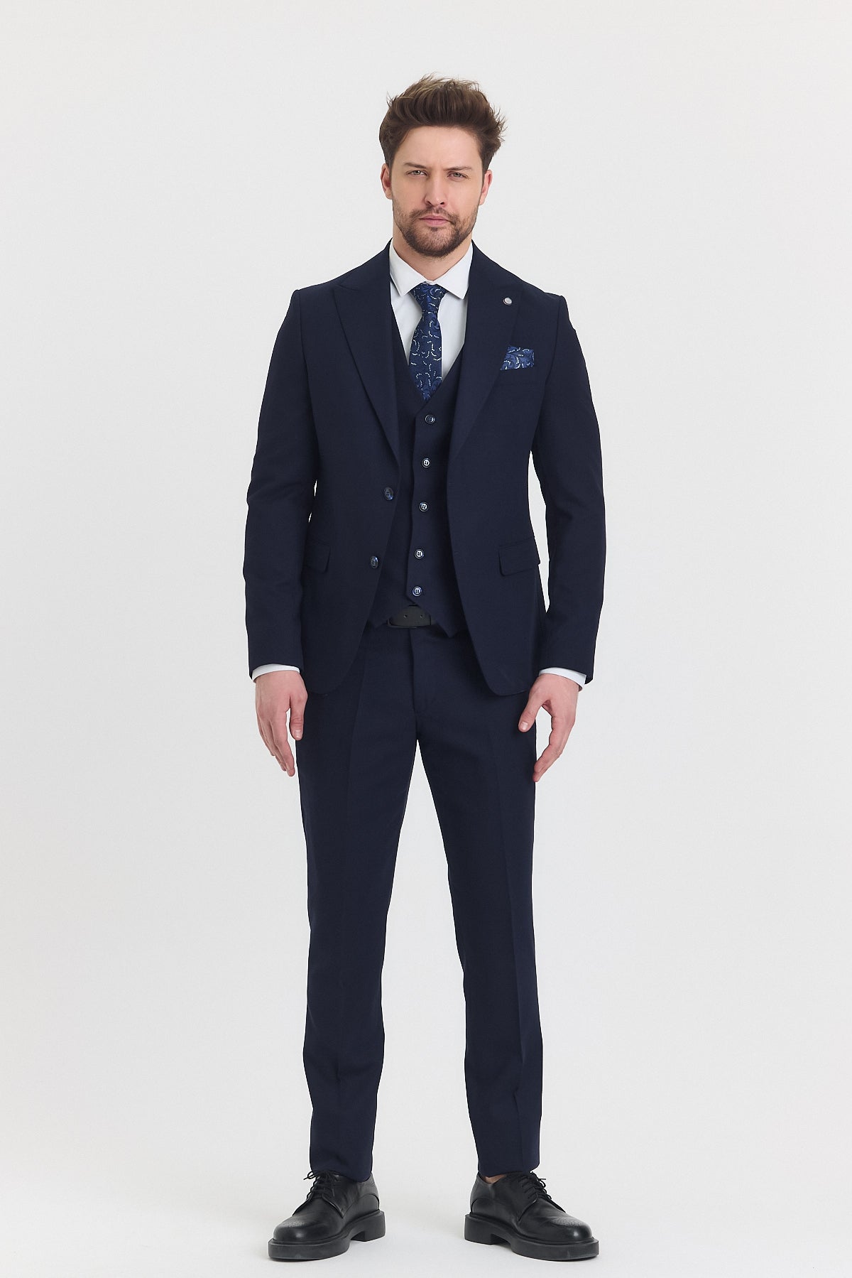 Guild Risan Slim Fit Anzug in Marineblau mit Weste
