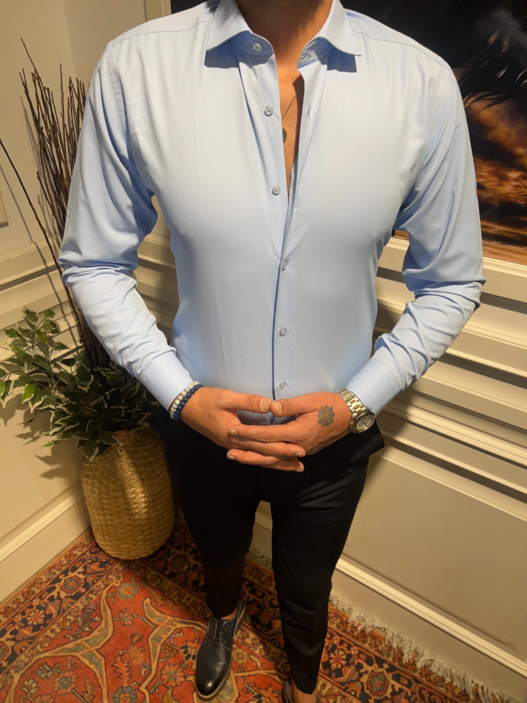 Hellblaues Slim-Fit-Hemd von Guild aus Satin